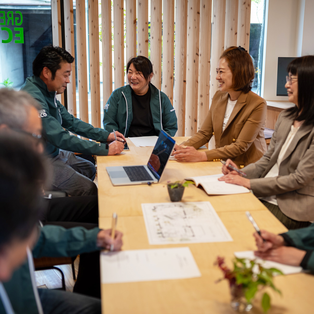 LOHAS GARDENの本社には、お打合せでご利用いただける展示場を併設。現在はZOOMでオンラインのお打ち合わせにも対応しています。