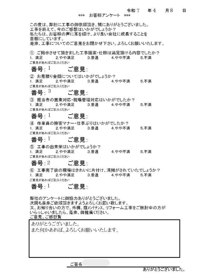 新築外構 T様 大阪府岸和田市 大阪府岸和田市のT様は、 ダイレクトメールをご覧いただき、お問い合わせをいただきました。 新築外構工事をお任せいただきました。 ありがとうございました。 実際にいただいたアンケートをご紹介いたします。