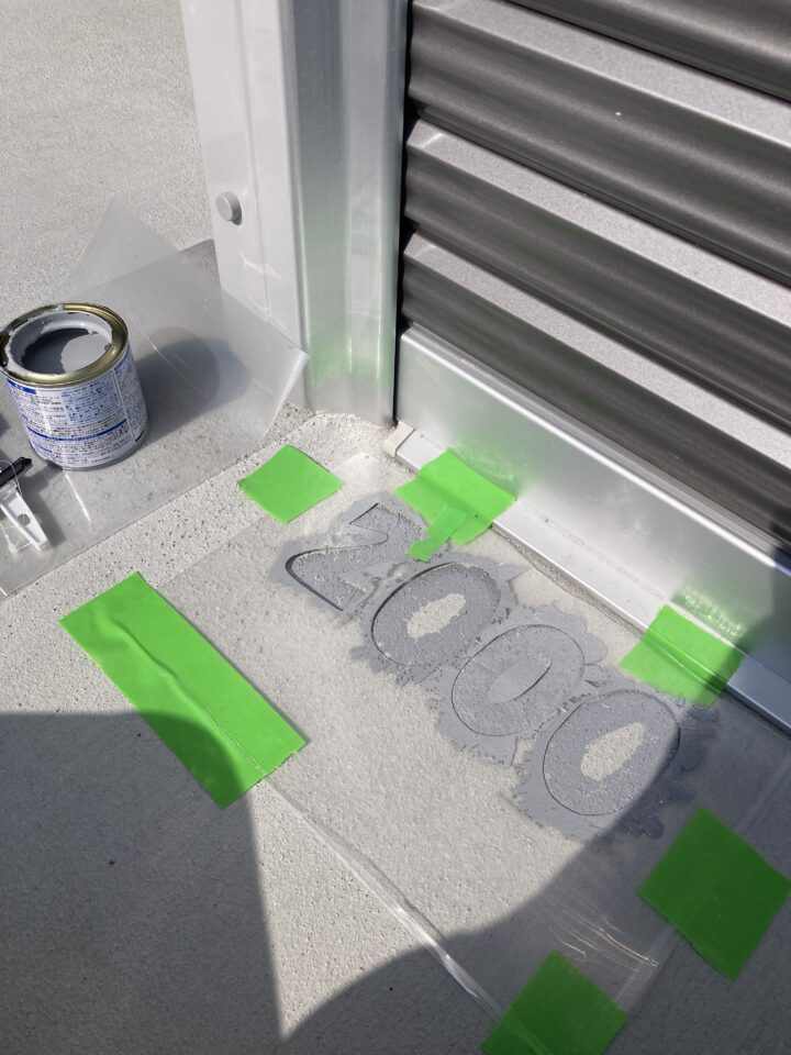 ガレージ前コンクリートに、「2000」の数字をステンシル施工でデザインしました。