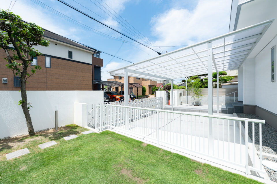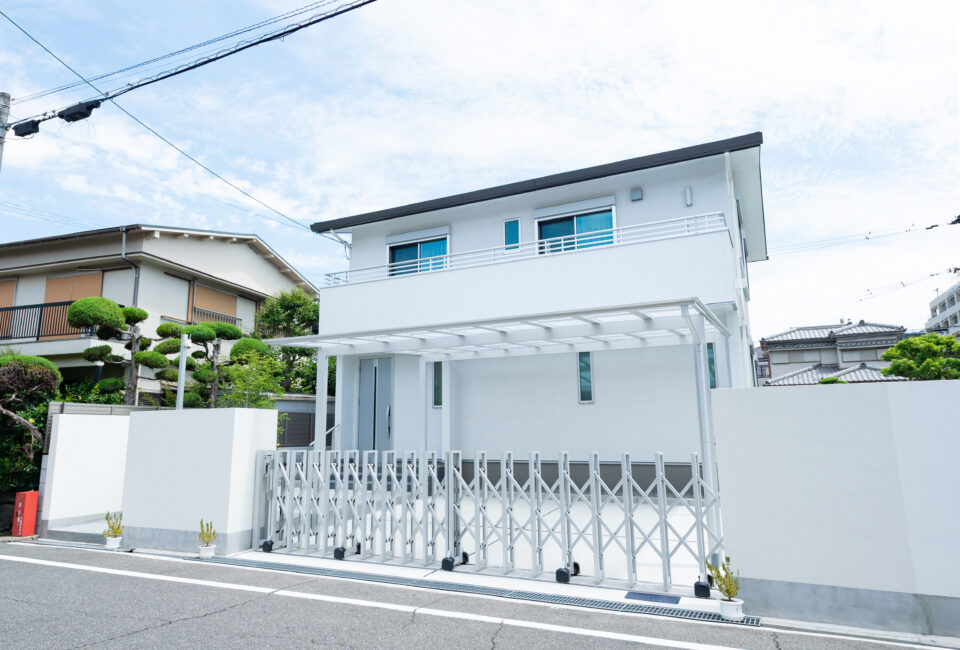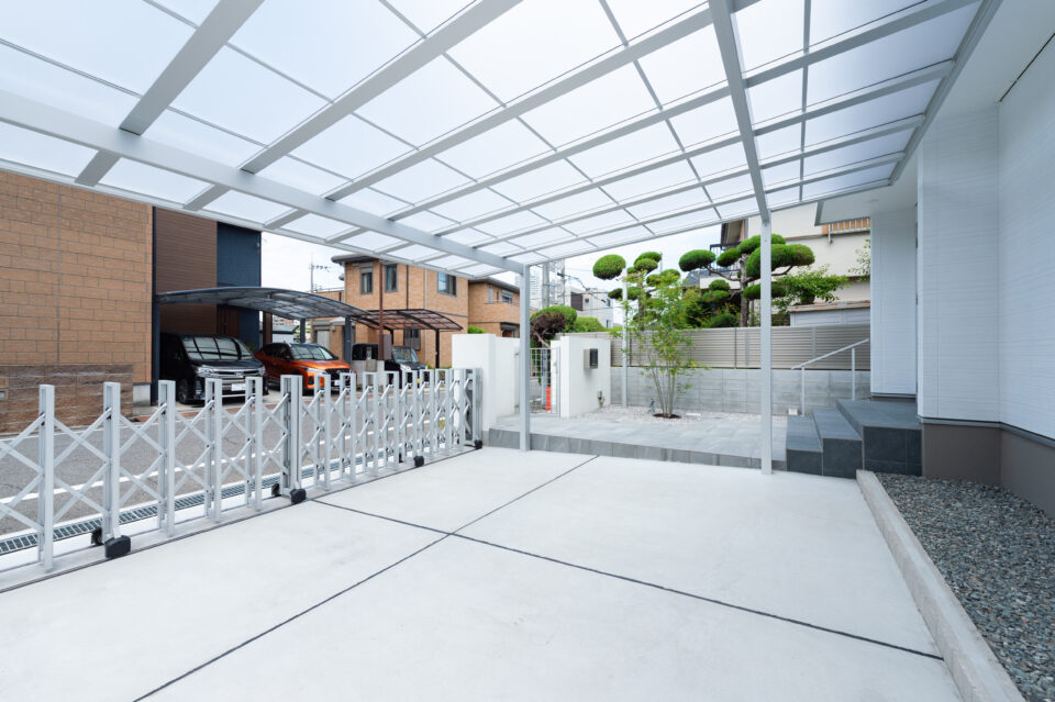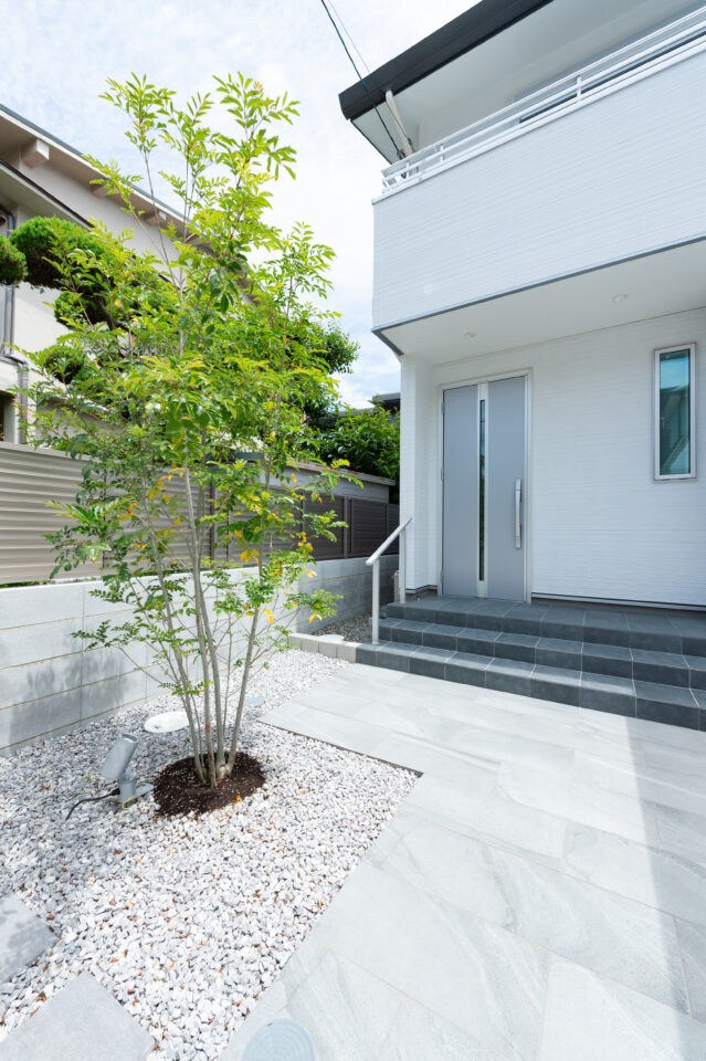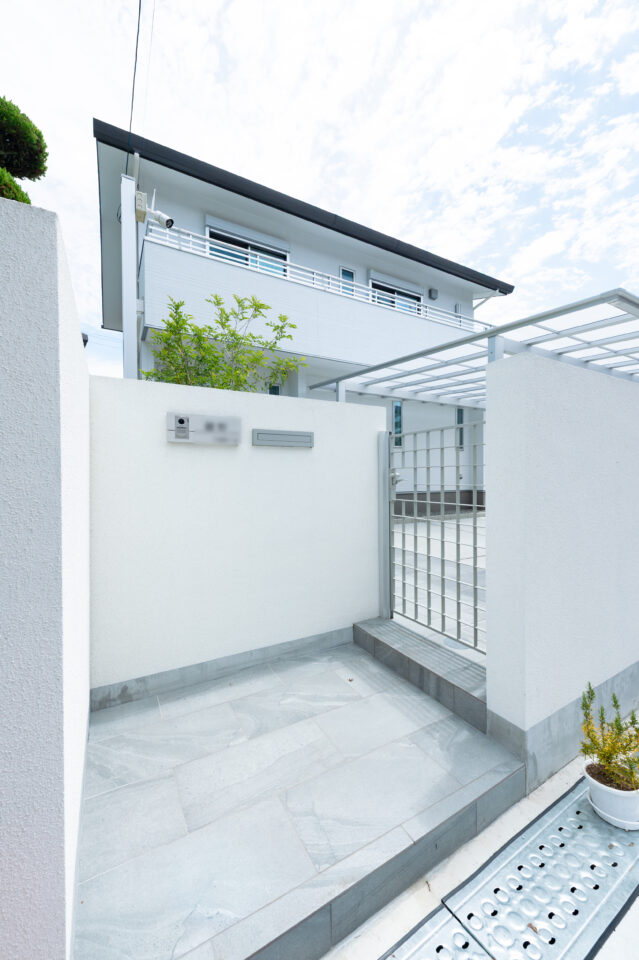 ホワイトとシルバーで魅せるシンプルモダン外構