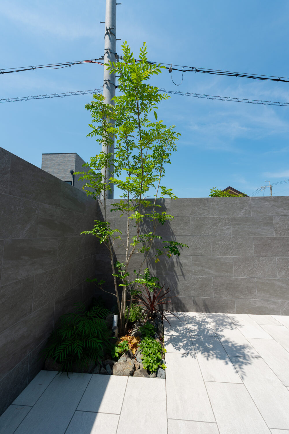 シンプルだからこそ植栽の鮮やかなグリーンがひときわ引き立ちます。