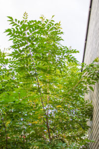 シマトネリコのように成長が早い木は剪定が必要。落葉樹は掃除の手間も考慮します。 - 安全性(枝の張り方・根の強さ)